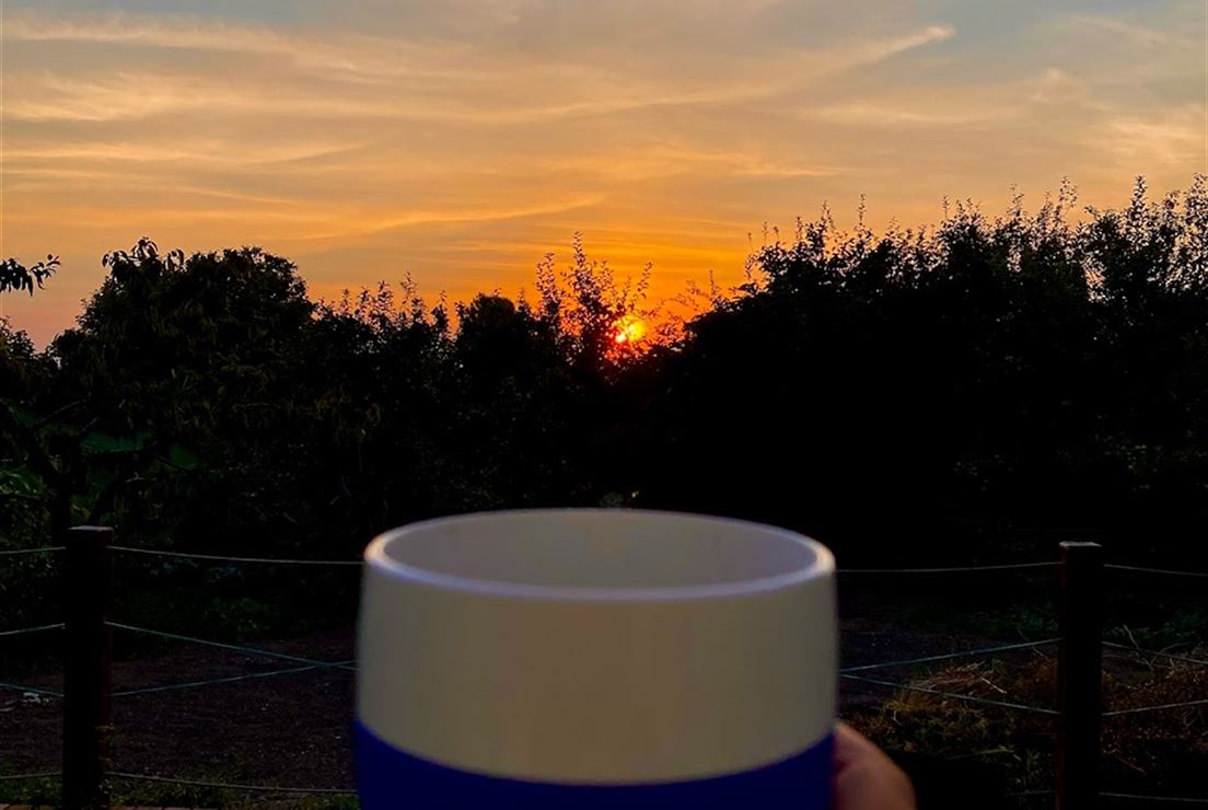 I used to make coffee in my house in a copper pot and go out into the garden, listen to the birds, watch the sunrise, now just in a pot but at least not in the hotel. I almost have my own personal space :-).