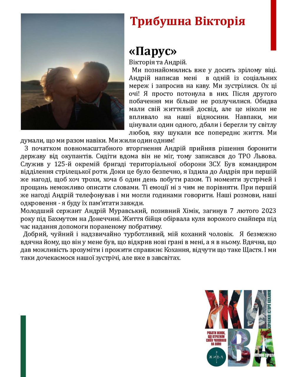 aiWith the beginning of the full-scale invasion, Andriy decided to defend our country. He could not stay at home so he enrolled in the Lviv TRO. He served in the 125th separate territorial defense brigade of the Armed Forces of Ukraine. He was commander of the rifle company branch. As long as it was safe I went to Andriy every opportunity, to be together for a little while, at least for one day.