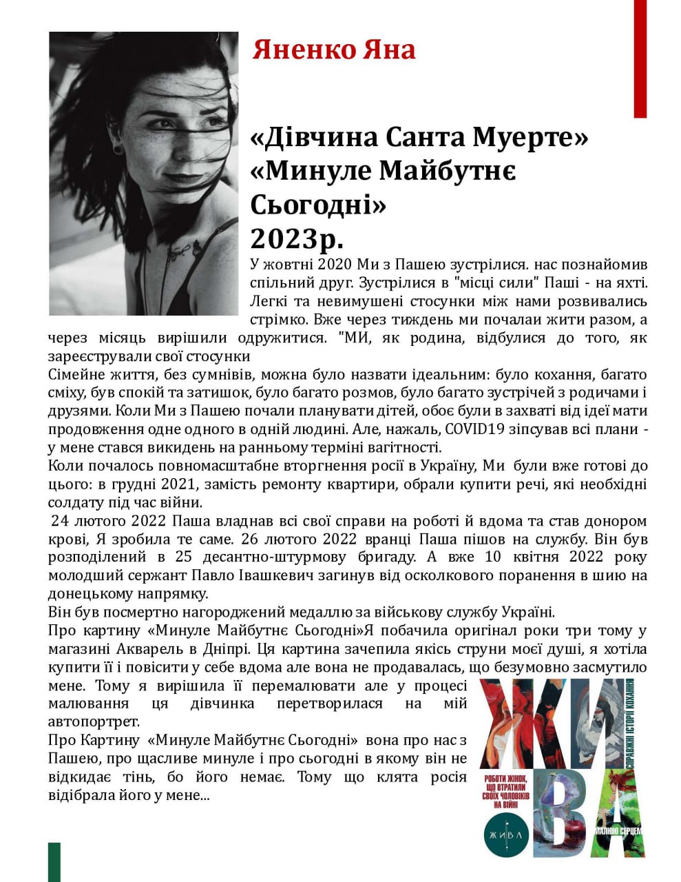 aiFebruary 24, 2022: Pasha was ready. He took care of all his affairs at work and at home. He became a blood donor, I did the same. And on the morning of February 26, 2022, Pasha went to serve. He was assigned to the 25th Assault Brigade. Soon after, on April 10, 2022, my Pavlo Ivashkevich, junior sergeant, died from a shrapnel wound in the neck in the Donetsk direction.
