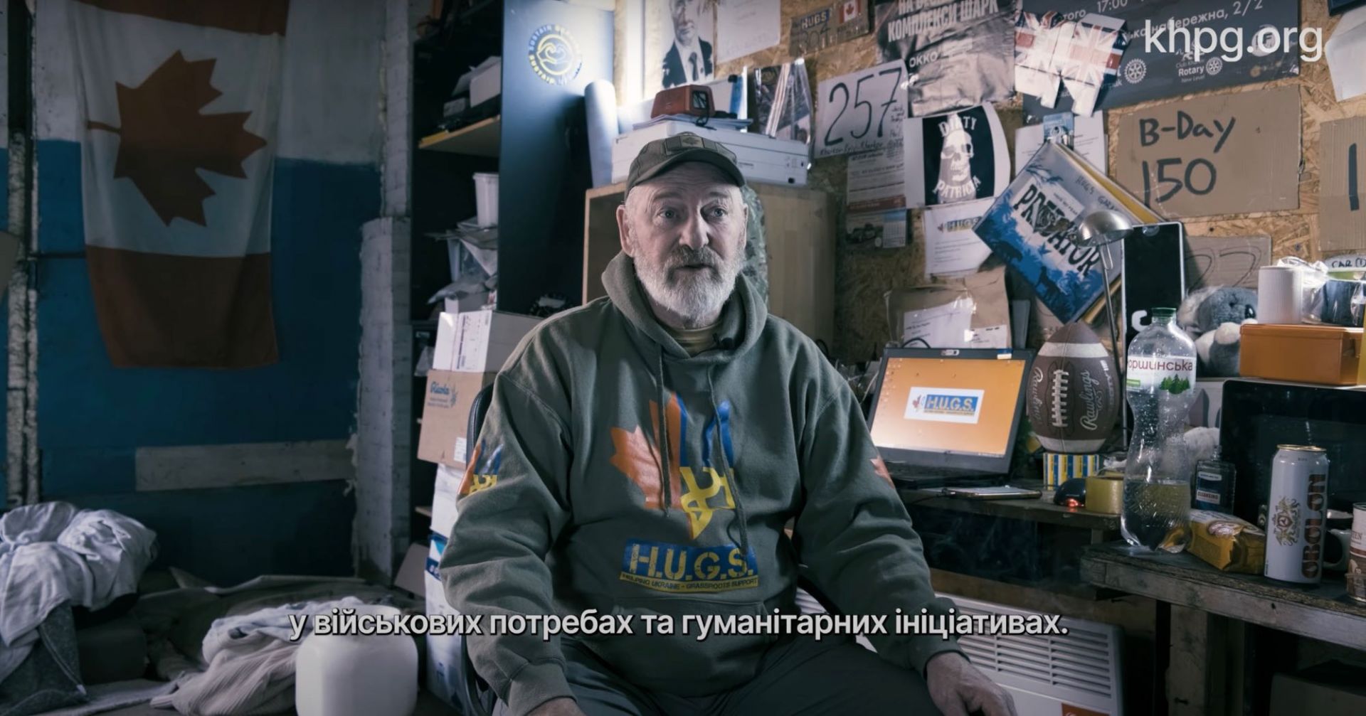 Пол Г'юз, фермер і колишній військовий з Канади, разом зі своїм сином створили волонтерську громадську організацію в Україні HUGS (Helping Ukraine grassroots support - Допомога Україні на місцях). Вони залишили свій дім і приїхали допомагати військовим та гуманітарним проєктам.