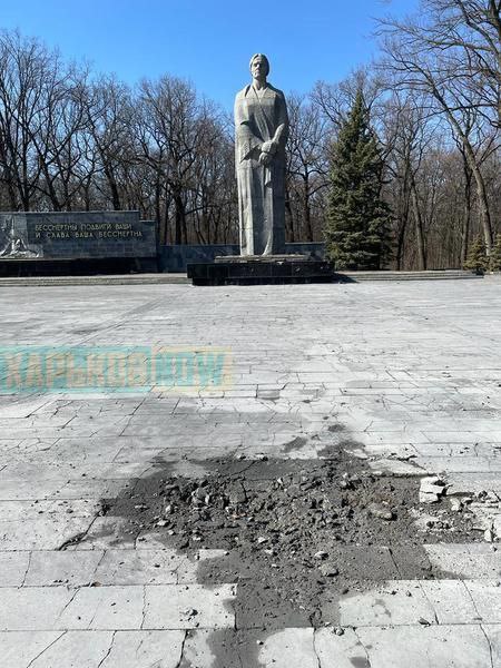 Монумент матері на Меморіалі Слави в Харкові, присвяченому загиблим в Другій світовій війні. Обстріляний російськими військовими 24 березня 2022.