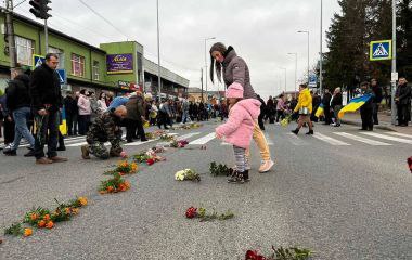 ai** Стати на коліно, схилити голову – знак подяки, традиція в Україні зустрічати і проводжати тіло загиблого воїна.
