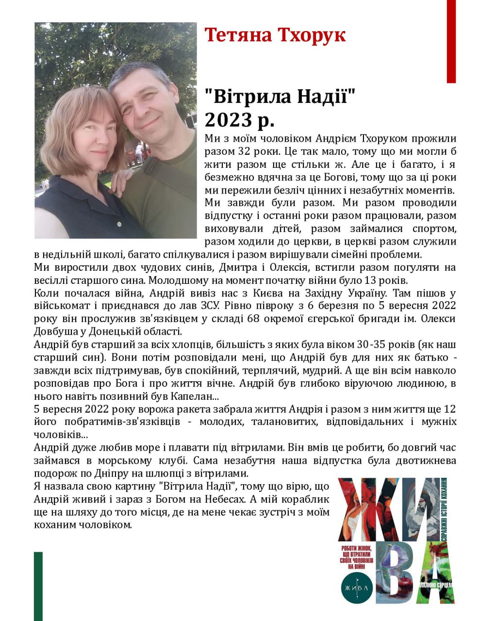 aiЯ назвала свою картину "Вітрила Надії", тому що вірю, що Андрій живий і зараз з Богом на Небесах. А мій кораблик ще на шляху до того місця, де на мене чекає зустріч з моїм коханим чоловіком.