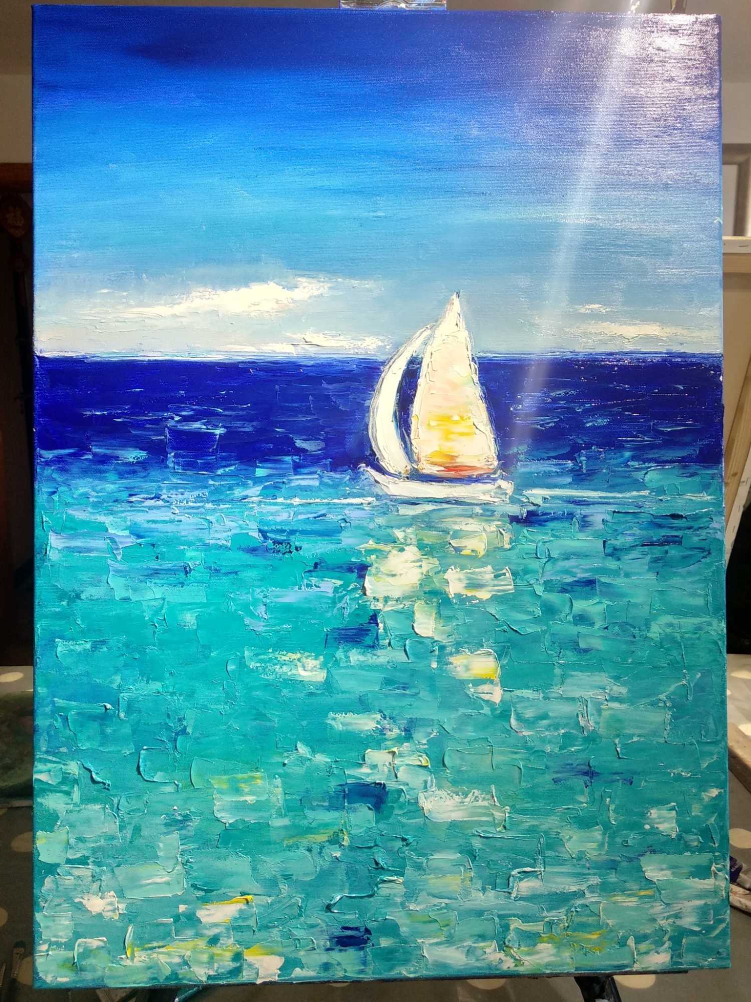 Я назвала свою картину "Вітрила Надії". А мій кораблик ще на шляху до того місця, де на мене чекає зустріч з моїм коханим чоловіком.